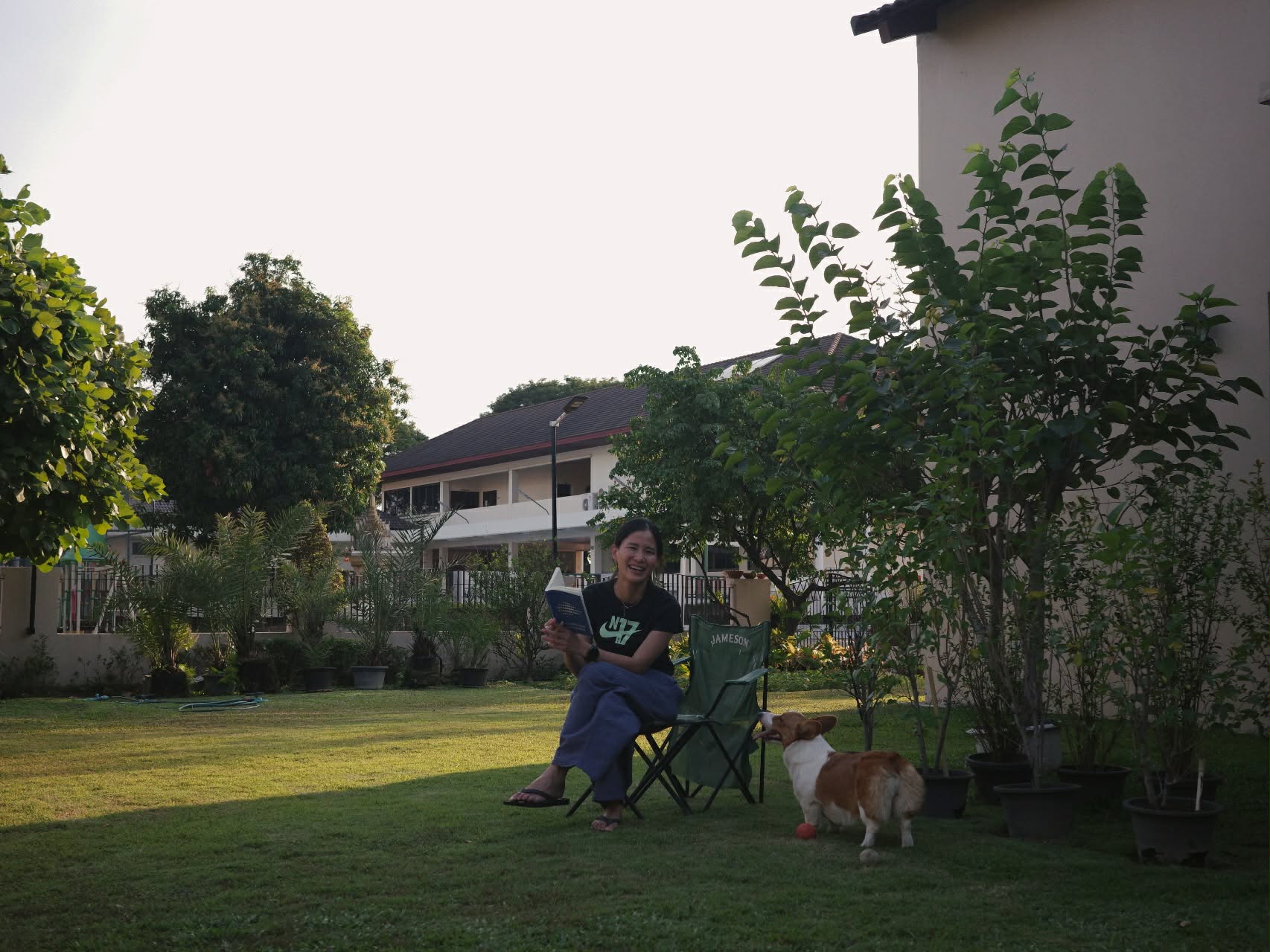 หมาแมว…เอาจริงๆ ตอนเลี้ยงแมวไม่รู้สึกไรเลยนะ มันติสไม่ค่อยยุ่งกับเรา แต่หมานี่แบบคนละเรื่องเลย เหมือนมีลูกอีกคนปรับจูนกันเยอะ แต่สุดท้าย คาปูเป็นหมาที่จูนกันติดนะ การที่อยู่บ้านเยอะนี่บอกเลย ติดหมาด้วย